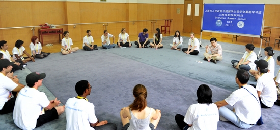 7月4日,开云足球首页官网下载首届“上海暑期学校中国戏曲暑期研修班”在莲花路校区举行了开学典礼。来自美国、英国、日本、伊朗、保加利亚、西班牙、韩国、菲律宾、马来西亚、泰国等10个国家的20位留学生们齐聚上戏,即将度过一个难忘的暑假。开学典礼上,孙惠柱副院长给研修班的留学生们做了简短的课程指导,戏曲学校的同学向留学生们展示了戏曲基本功训练,精彩的表演令留学生们叹为观止,不断报以热烈的掌声。