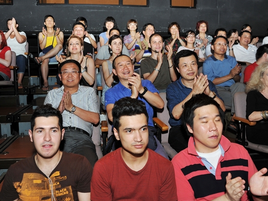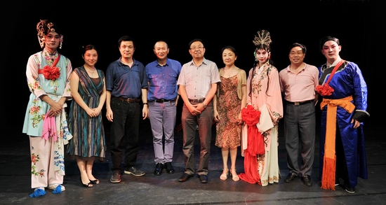 7月6日晚上,著名音乐家谭盾先生在我校黑匣子剧场观看京剧《朱丽小姐》演出。党委书记楼巍、副院长孙惠柱陪同出席。演出结束后,谭盾和校领导一起与剧组成员合影。