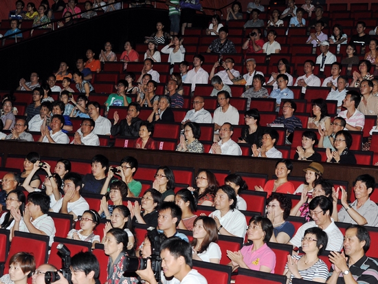 图为殷一璀副书记与杨振武部长祝贺首演成功