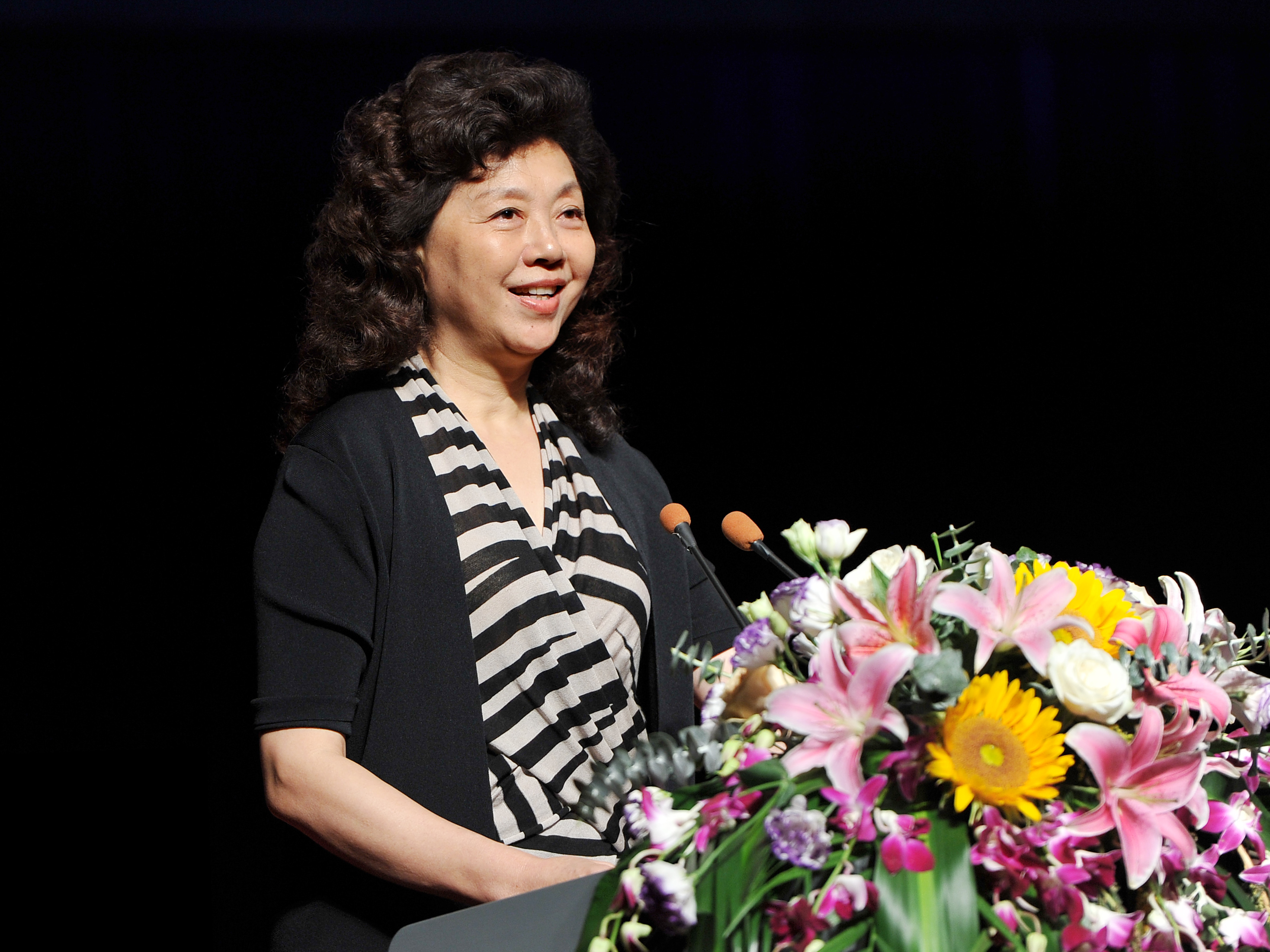 舞美系教授徐家华代表教师寄语新同学,她向初入校园的新生表示热烈的欢迎和美好的祝愿,勉励新同学珍惜这来之不易的机会,在这个美丽的校园中,做这片草坪的主人,学好本领,报效祖国,开启更加绚烂美好的人生旅程。