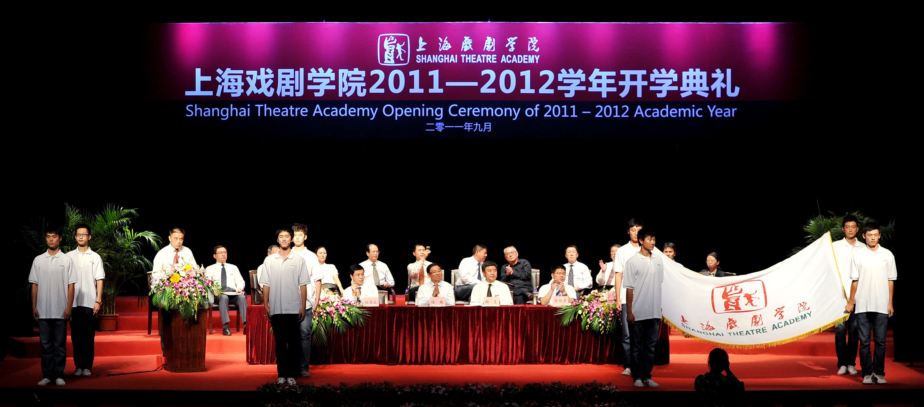 9月9日下午,我校2011——2012学年开学典礼在上戏剧院隆重举行。学校领导楼巍、韩生、孙惠柱、黄昌勇、宫宝荣、张伟令,以及各院系院长、系主任、支部书记出席会议并在主席台就座。大会由副院长张伟令主持。全体2011级新生,2011级班主任、辅导员和教师代表一同参加了大会。