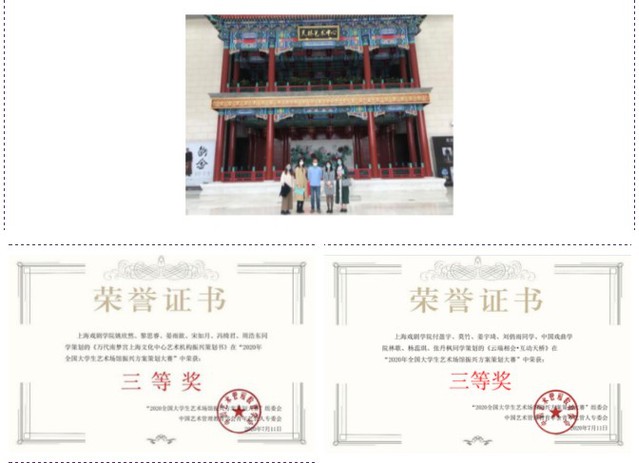 2018级艺术管理专业的两组同学参加了“2020年全国大学生艺术场馆振兴方案策划大赛”并获三等奖。通过网络和现场调研的方式,针对北京的天桥艺术中心提出了很好的方案,获得天桥艺术中心管理方的认可。
