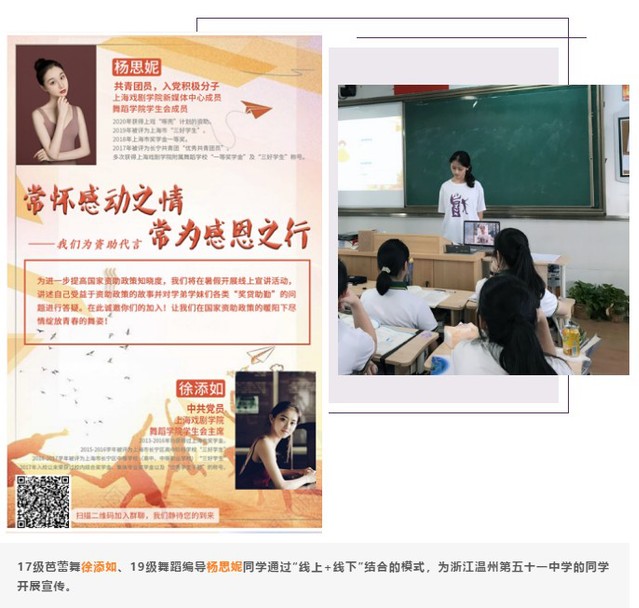 暑假里,我校10名奖学金获奖学生和受助学生通过线上、线下结合方式,现身说法,在家乡向学弟学妹们或大学新生宣传国家学生资助政策和成效,促进高中和大学学段之间的资助衔接,助力教育脱贫攻坚。