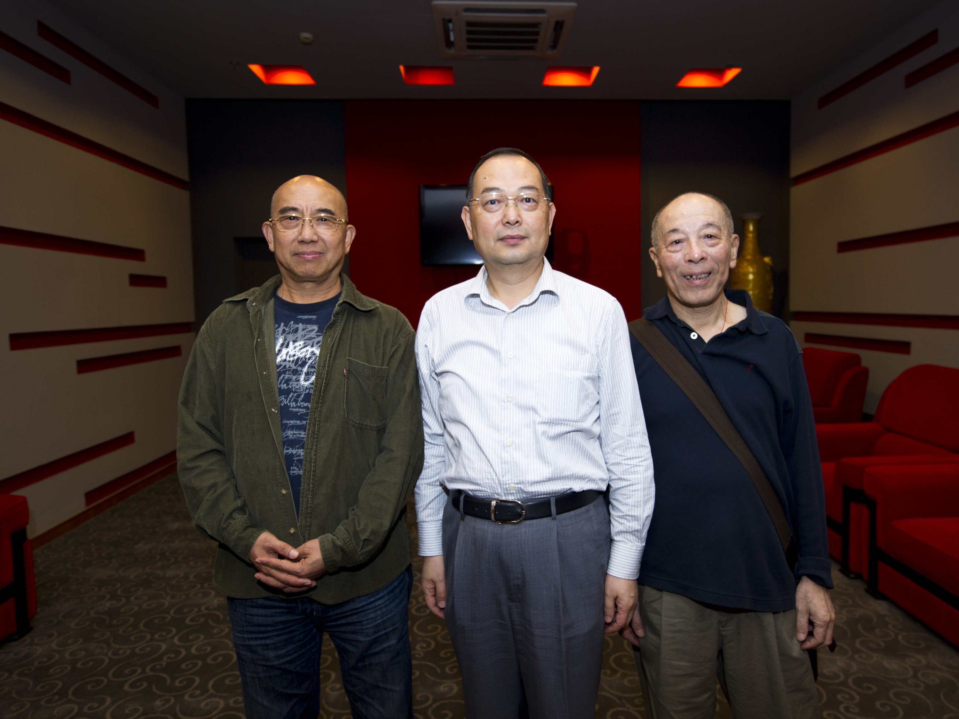 图为杨振武部长与导演熊源伟、编剧谷白合影