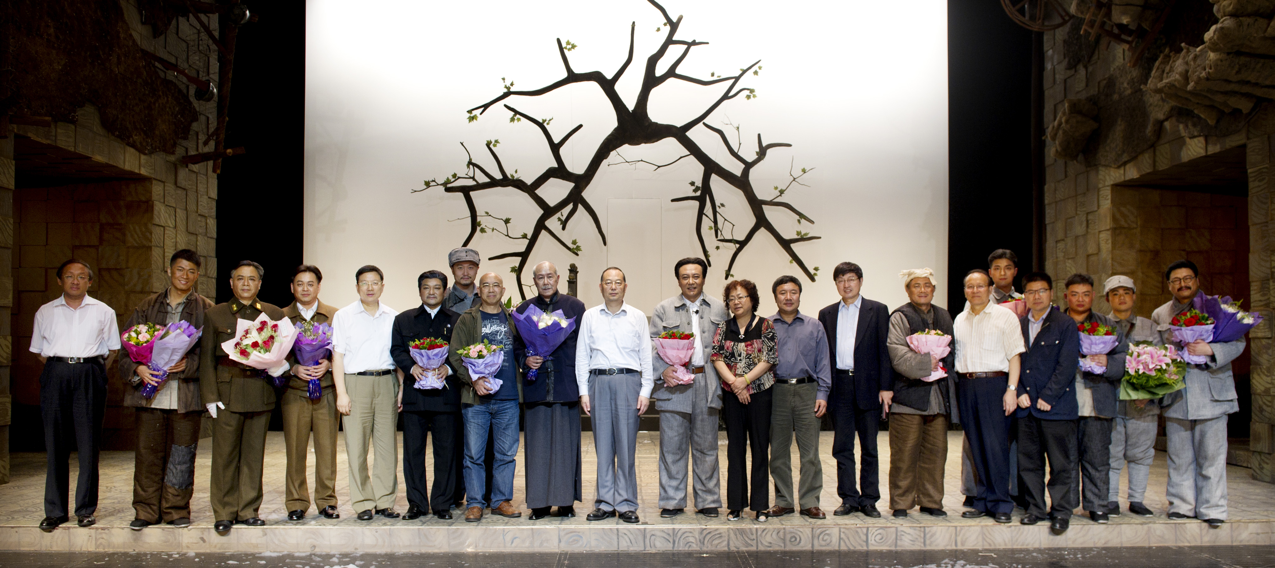 最后,领导与全体演员及导演合影,并期望大家精益求精为祖国母亲62周岁生日献上一份精彩的贺礼。