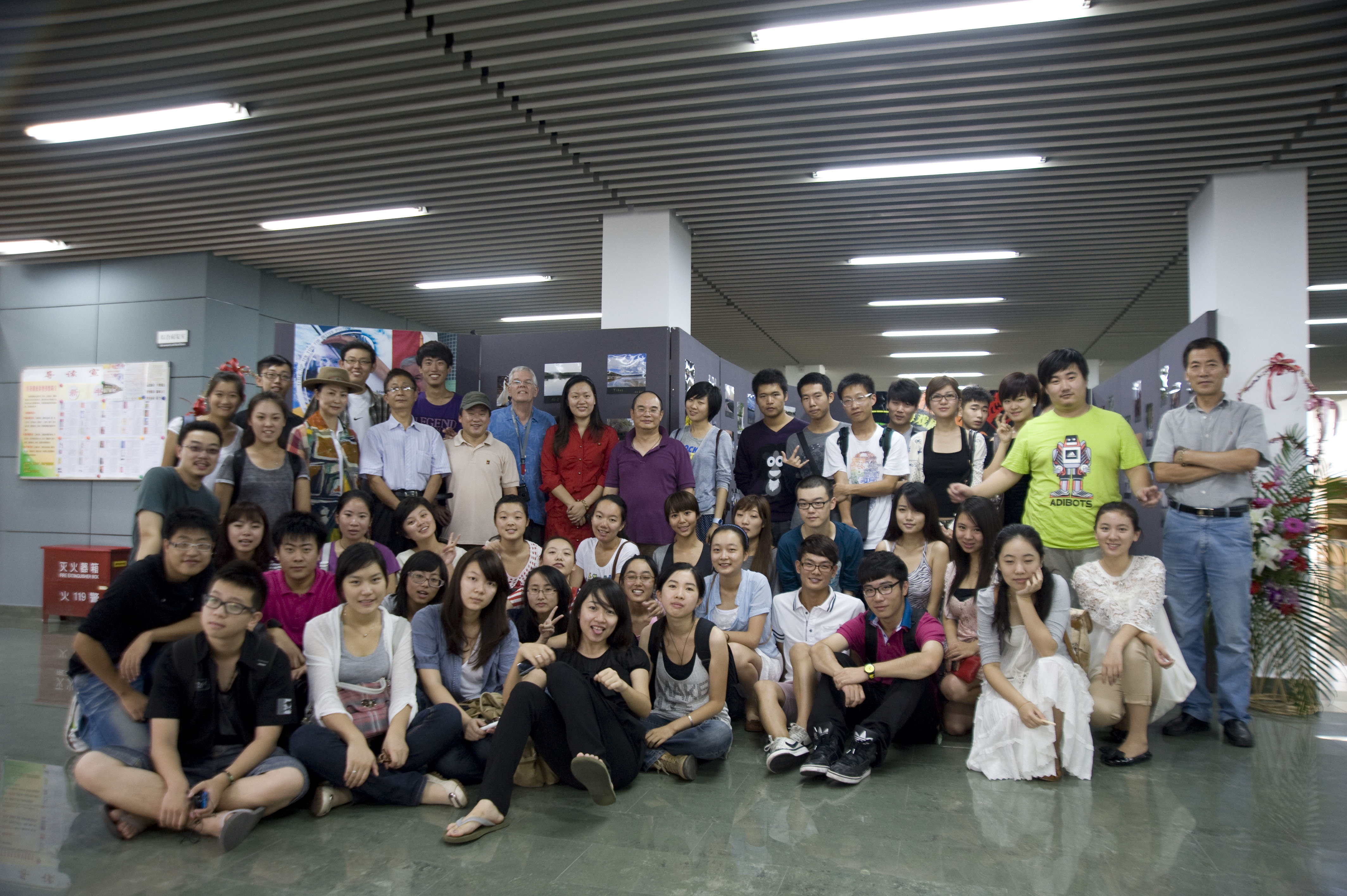 实践课程后,Mike Adams教授以其丰富的摄影知识和经验评论了各位同学在讲座后拍摄的作品,并结合包括色调、光线、明暗的处理方法以细腻的角度辅导学生在日后拍摄中更好的选择角度,这样的亲身传授令人印象深刻!与此同时,Mike Adams教授还从众多的学生作品中筛选出了47幅优秀摄影作品,并于9月29日在开云足球首页官网下载莲花路校区图书馆大厅拉开了影展的帷幕。此次影展由 Mike Adams教授、电视艺术学院赵韫颖院长、杨剑明老师、詹新老师、方虹老师、周凤举老师以及尹悦蓉老师等多位领导莅临参观,并与广播电视编导专业一、二年级的学生合影留念。在学生的簇拥下,Mike Adams教授等各位老师、同学先后在影展的签名板上留下了观影感受和签名,气氛极其热烈!