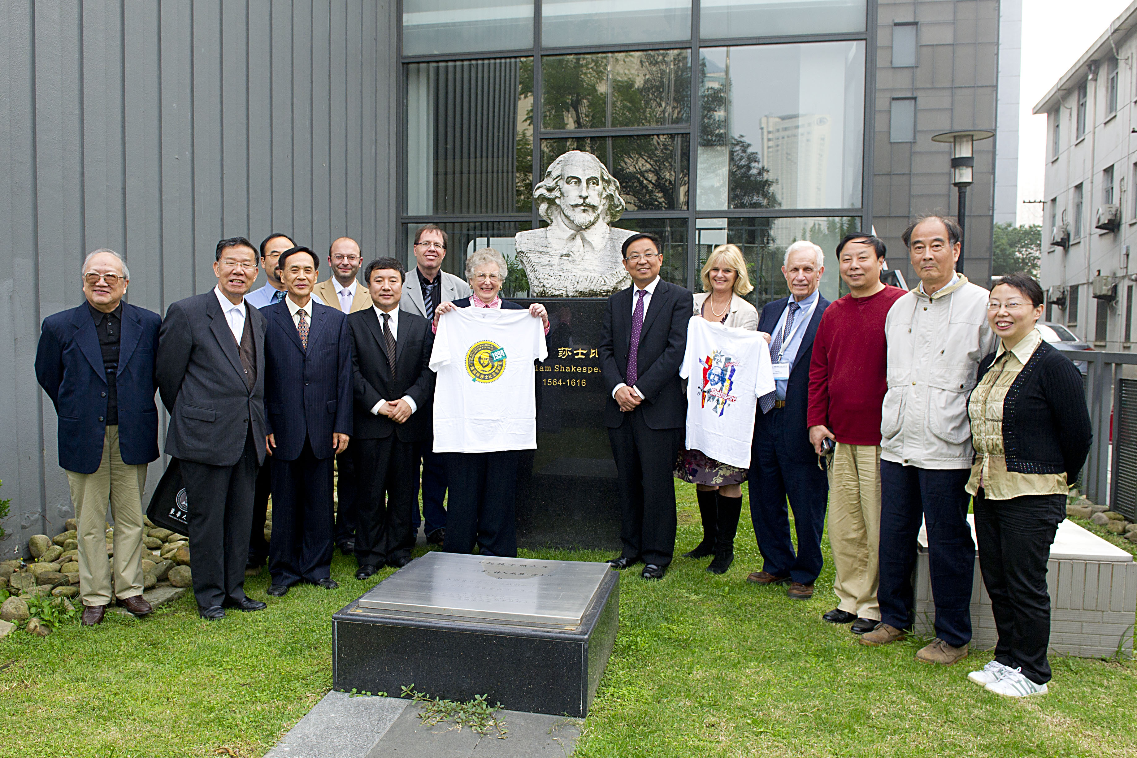 国际莎学家代表团在上戏莎士比亚雕像前留影