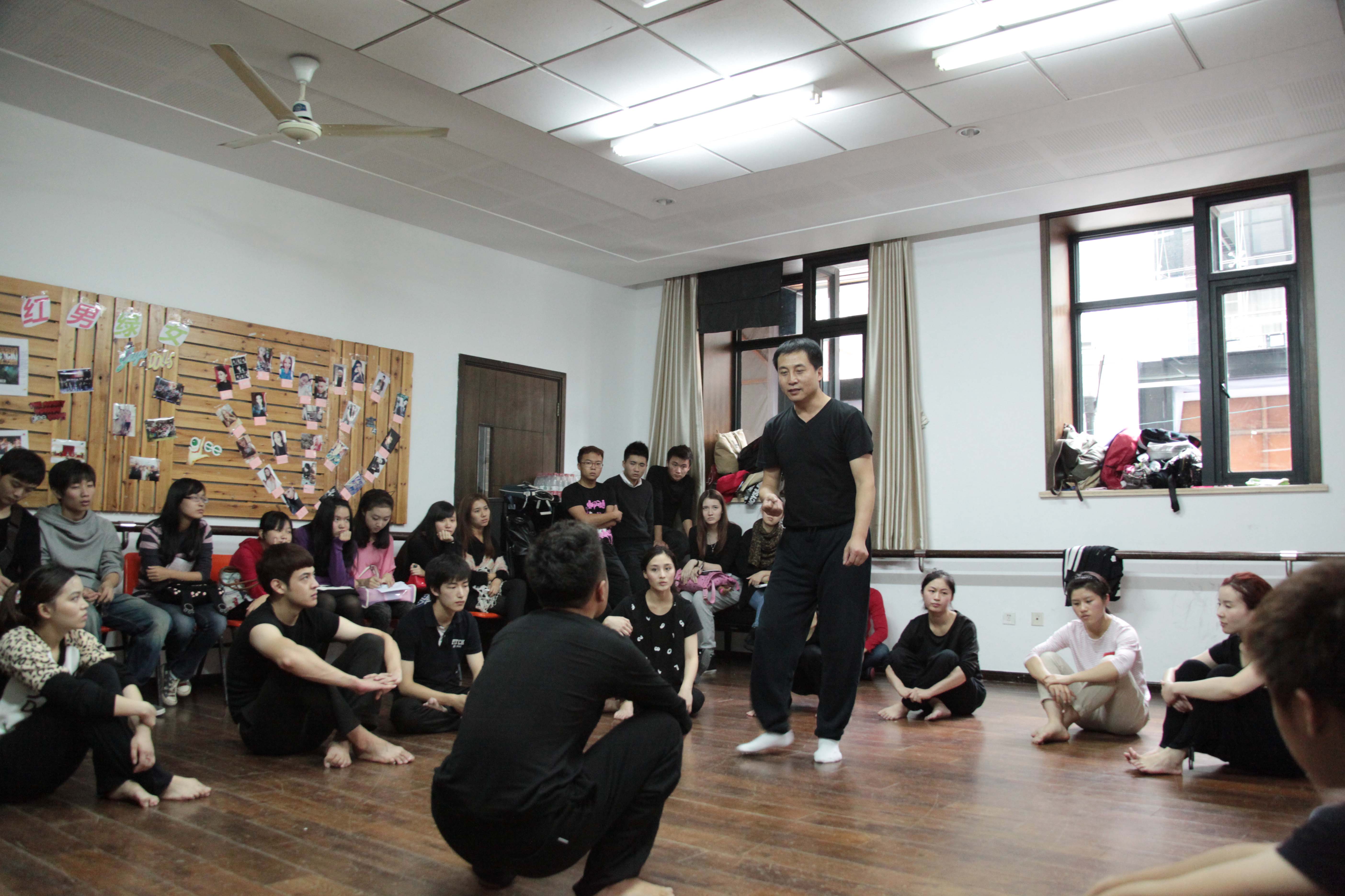 伴随着舒缓的音乐,看着沉浸在自己世界的学生,何雁老师微微一笑,按下录音机开关,开始了表演工作坊。