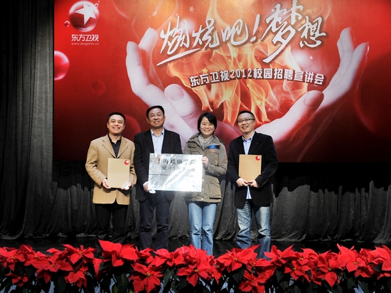 11月30日下午三点,“燃烧吧,梦想!东方卫视2012校园招聘宣讲会——暨开云足球首页官网下载与东方卫视‘实习生培训基地’签约仪式在端钧剧场举行。