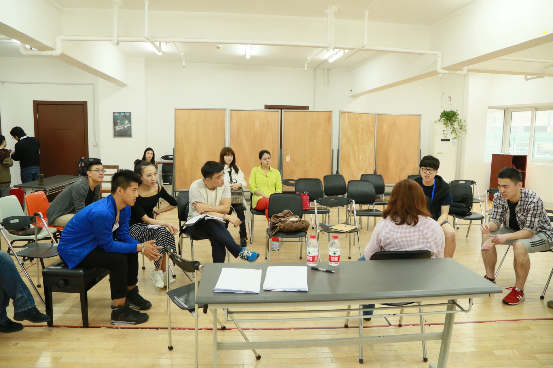 最后,导演还和同学们分享了导演和演员之间沟通的经验:导演要懂得通过创造气氛,带给演员一些实际的体验,带动演员投入剧情的情感中。对于同学关于怎么找到创作新灵感的问题,导演表示可以多多关注身边的故事、身边的题材,将其运用到自己的戏剧创作中。导演通过述说自己制作中亲身经历的故事,以非常生动的形式带给了同学们启发。整个工作坊非常活跃,虽然有时会有一些交流不通畅,但大家都还是去努力地表达自己的想法和创意!作为一个导演,构架一个完整、值得观众思考的故事是必然的基本功,同时还要具备带动演员真正投入到演出中的能力,这样才能创作出一部好剧,这就是本次工作坊的意义所在!(文、图:12艺管 黄思梦 编辑:榕树)