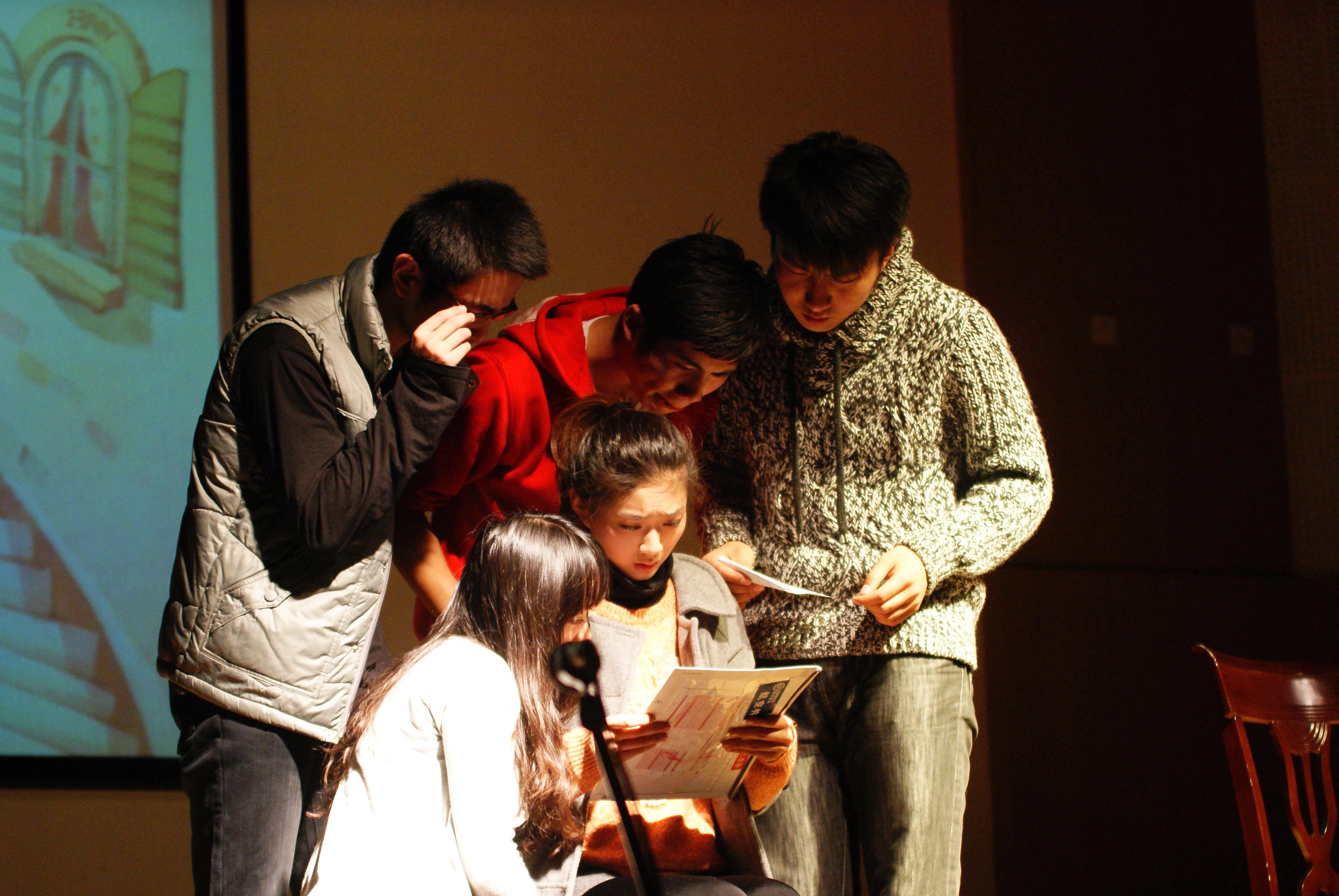 图为郑雪菲同学(左一)获得最佳女演员奖