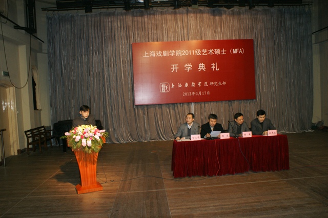 典礼由宫宝荣副院长主持,他首先向2011级MFA新生表示热烈的祝贺和欢迎,随后,王佳健同学和张长征同学分别代表上戏艺术硕士老生和2011级新生作了发言。王佳健同学总结自己在上戏两年学习生活的经验,给新同学们归纳了精辟、真诚的建议;张长征同学则在十年后以学生身份重归母校,坦言有回家的感觉,表示要格外珍惜学习机会,并期盼找到志同道合的师生,共圆艺术之梦。