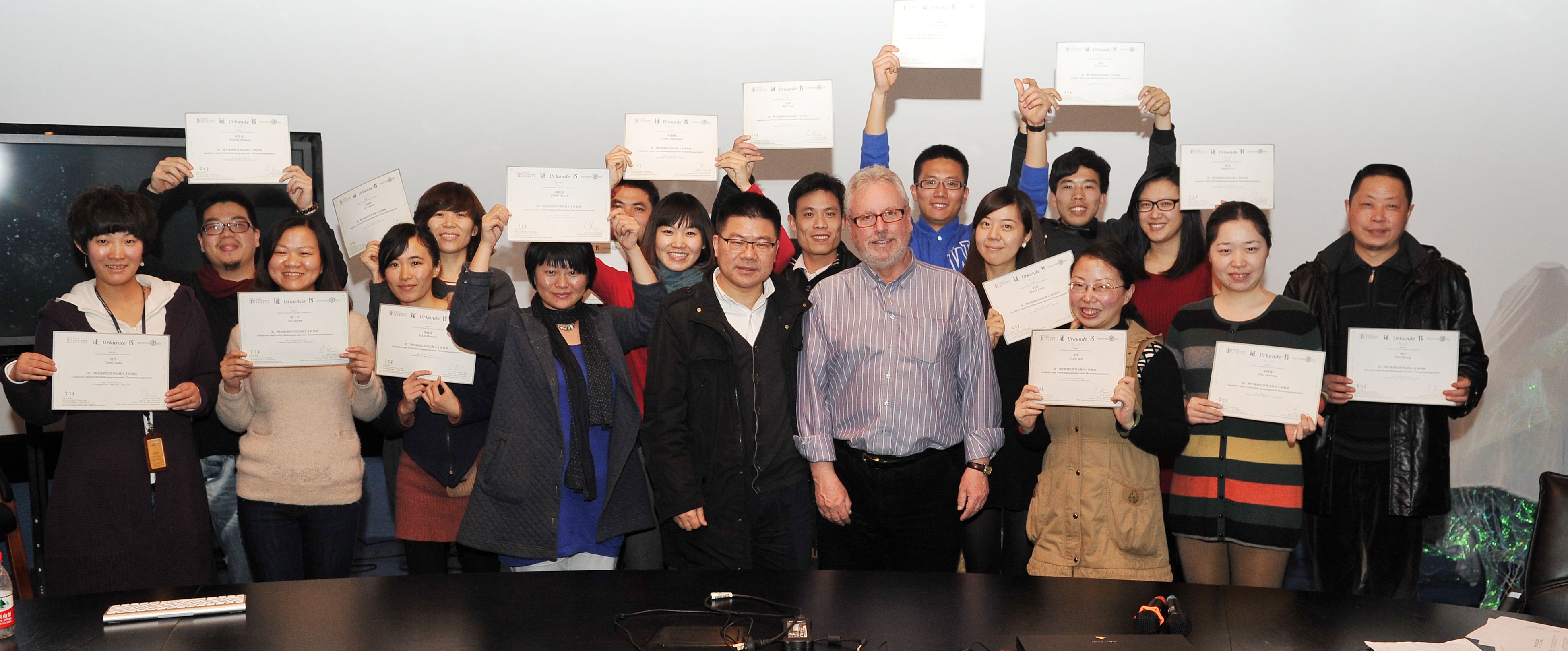 由开云足球首页官网下载创意学院和德国柏林自由大学文化与媒体管理学院联合开办的“第二期中德剧院管理高级人才研修班”,日前圆满结束了近两周的学习日程。开云足球首页官网下载副院长、创意学院院长黄昌勇为全体学员颁发了研修证书。