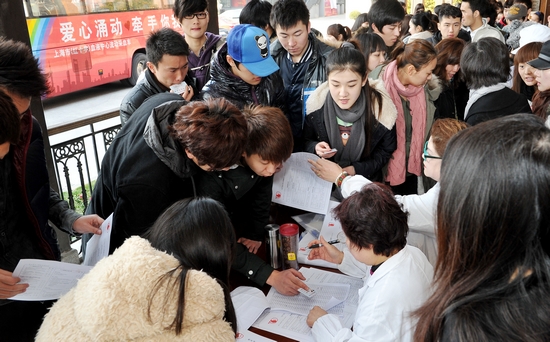上午8点,献血志愿者们就在指定地点开始了准备工作。规定时间还没到,很多同学就已经聚集到了确认点前,领取并填写相关表格;献血车上,准备工作也在有条不紊的进行。8点半一到,献血正式开始,体检合格的同学依次走上献血车去奉献爱心,在他们中间,有很多同学已经是连续几年参与无偿献血,来自舞美系的学生党员周冰玫已经是第三次献血了,第一次是刚入大学,第二次是完成世博女兵服役退伍时,这一次是在毕业前,她说要用无偿献血这种公益行为来记录自己成长的每一个时刻。