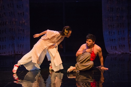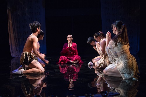 带着这样的疑惑,由善良纯洁的维摩诘带领下,我们走近了这部汇聚了古典诗歌、宗教、舞蹈、戏曲等中国传统文化元素的原创实验肢体剧——《婆娑》。整剧将舞蹈、戏曲、魔术和戏剧相结合的方式展开,通过讲述以中国古代龟兹高僧鸠摩罗什和六世达赖喇嘛为人物原型的僧人梵生,佛陀身边菩提树下顽劣的红狐,人称“肉先生”的仙圣和巡抚林氏女平生之间的矛盾纠结,以探讨梦与现实真假的主要线索,展现出“情不重,不生娑婆”的中心思想。并以佛教思想与世间情欲为基础展开演绎,让观众在观赏了解剧的同时,能享受和思考佛教哲学和中国传统文化的魅力。