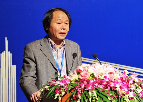 图为上海市政府发展研究中心副主任朱金海发言