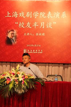 4月27日下午,在表演系各年级学生的满心期待和掌声中,张秋歌再次回到母校,于上戏新空间举行校友半月谈活动。