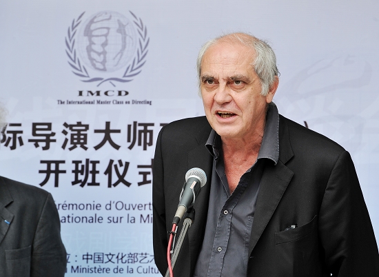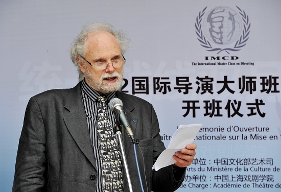 宫宝荣副院长、文化部艺术司周汉平处长为开班仪式致辞。宫院长简要介绍了国际导演大师班的概况,接着表达了对法国戏剧艺术丰富历史以及伟大造诣的赞美,以及对中法艺术文化共同发展的美好展望。周汉平处长在致辞中首先代表文化部的艺术司董伟司长为本期导演大师班的开班表示热烈祝贺,然后表达了戏剧复杂的综合性,以及导演的重要性。两位来自法国的著名戏剧艺术家在发言中表达了对此次中国行的期待,以及将要与学员们分享的对戏剧理论、实践的探讨方向。