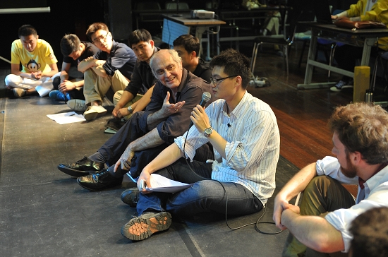 学员们围成圈在黑匣子席地而坐,这是让-路易喜欢的交流方式,他表示不喜欢“倒酒式”的教学方法,把知识硬灌给学生,而是希望学员们在交流互动中学习。因为导演不是一个人的事,而是一个团队,如果失掉这个团队那就什么也做不成。