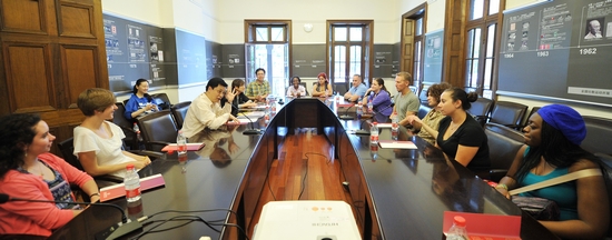 5月25日,美国伊利诺伊大学艺术学院表演和舞蹈专业的师生共计13人来访开云足球首页官网下载。此次考察是该大学的海外考察项目,也是该大学第二次派师生代表团来上戏访问。孙惠柱副院长带领上戏国际交流中心的工作人员接待了代表团。双方就中国与美国在表演、舞蹈等专业教育领域的经验进行了交流,特别是探讨了两国在教育体制、教育方法上的差异与共同点。交流后,伊利诺伊大学艺术学院的师生们先后参观了表演系孟小军老师的喜剧专业二年级形体课,和王学明老师指导表演专业二年级学生排练的独幕剧《未婚夫妻》。