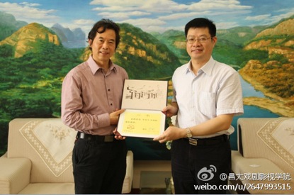 我院陆军教授日前应邀赴南昌大学讲学,受到该校师生欢迎。俄罗斯工程院外籍院士、南昌大学校长周文斌教授向陆军颁发了南昌大学兼职教授的聘书。受聘仪式后,周文斌校长与陆军教授进行了亲切交谈。(文:晓菱)