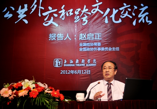 6月12日下午,全国政协常委、全国政协外事委员会主任赵启正为我校师生及部分老干部代表在上戏剧院举行了题为“公共外交和跨文化交流”的讲座,讲座由楼巍书记主持。整场讲座座无虚席,不时爆发出热烈的掌声。