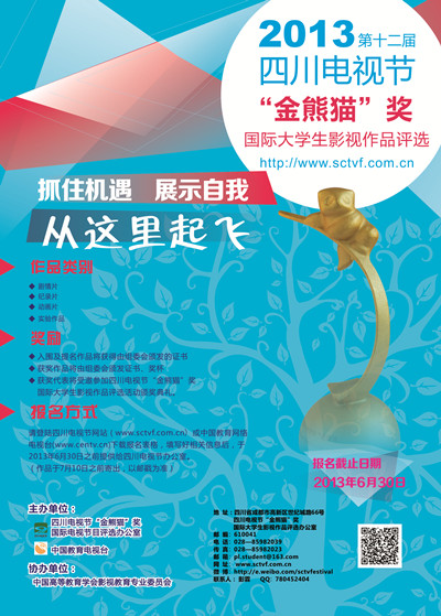 2013四川电视节和中国教育电视台在成功举办2009、2011两届“金熊猫”奖国际大学生影视作品评选活动的基础上,将继续举办此项活动,旨在鼓励大学生用心去发现、纪录、思考自己的大学生活。与此同时,作为社会发展进步的新生力量,希望大学生用影像作品的形式,用多种视觉艺术的表现手法,以社会担当的精神,关注文化保护与传承,关注社会发展和进步,关注自然与环境的保护、平衡与和谐发展。并以此鼓励校园优秀作品,为影视业不断发展的需要培养、发现、推荐优秀人才。