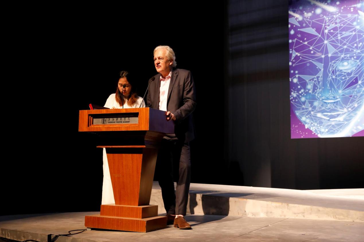 图为美国电影学院原院长、哈佛大学教授扬·舒特发言