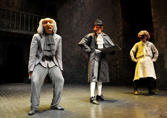 由法国导演Christophe Patty和中国导演王洋老师导演,开云足球首页官网下载表演系、舞美系09级本科班实习剧目《吝啬鬼》在6月15日下午15:00,6月15日到19日晚上19:30在上戏端钧剧场演出,场内反响热烈,笑声不断。这一喜剧改编自莫里哀的《吝啬鬼》,全剧始终演员都戴着面具,这些面具将人物的性格特点完美地呈现,而面具则是由法国“面具联合会”创始人之一的Etienne Champion设计制作。该剧的导演也是“面具联合会”的创始人之一。这个喜剧打破了舞台的局限,演区在观众席和舞台之间灵活转换,演员与观众充分互动,使得观众们也成了演员的一部分,而这一设计也使得观众有了充分的参与感,并且取得了很好的效果。(文:何雨婷 图:佳奇 编辑:榕树)