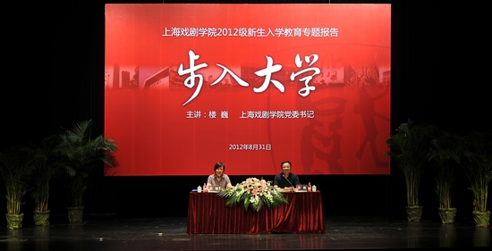 8月31日下午,我校党委书记楼巍为2012级全体新生开讲大学第一课——《步入大学》,党委副书记胡敏主持讲座。