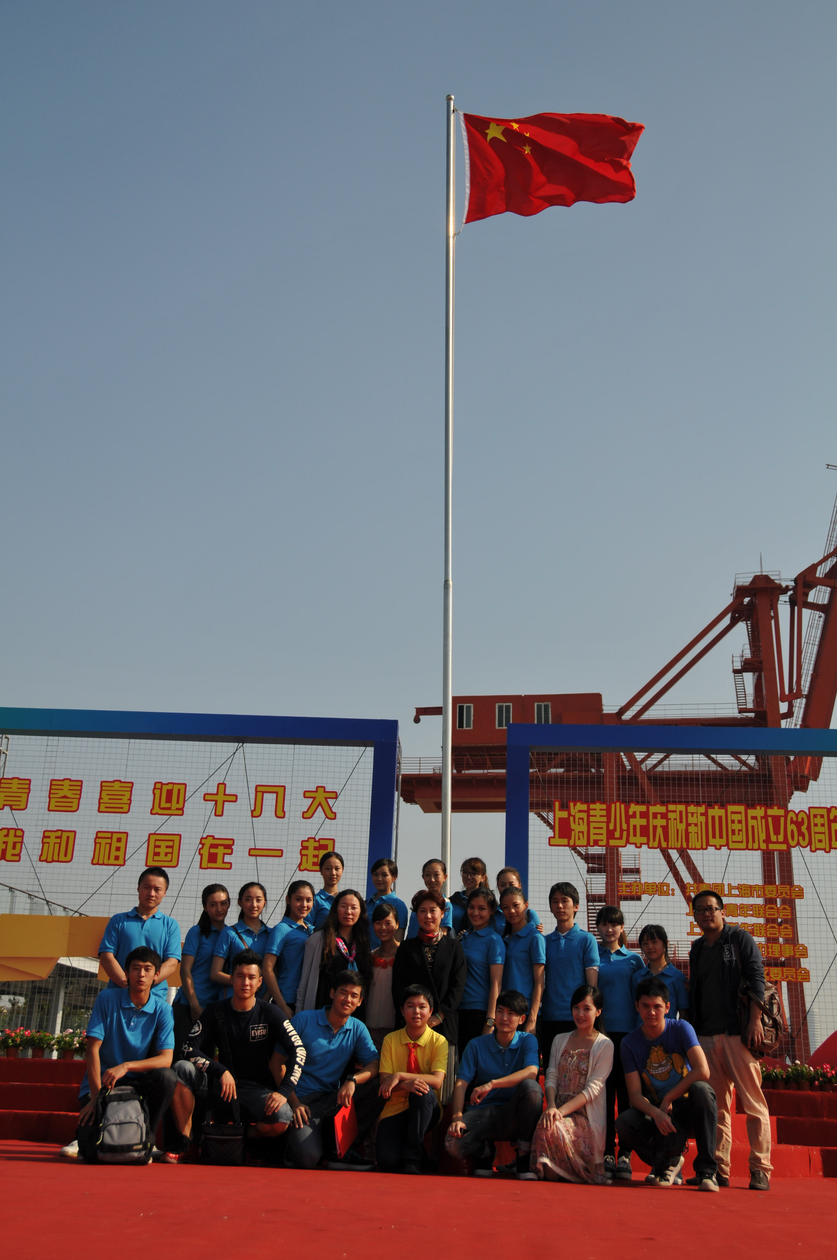 10月1日上午8点许,“青春喜迎十八大,我和祖国在一起”上海青少年庆祝新中国成立63周年升旗仪式在浦江西岸(徐汇滨江)隆重举行。团市委书记潘敏,徐汇区委副书记李子骏,团市委副书记夏科家、徐彬、徐未晚等领导出席。我校团委书记陈云老师带队参加,工会常务副主席王苏老师带队演出。