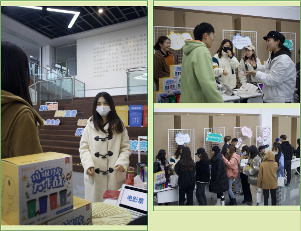 同学们在摊位前进行着头脑风暴,在回答问题的同时,也学到了平时不知道的垃圾分类问题。并且通过模拟垃圾分类的情境,让同学们更有代入感地去思考生活中为何要垃圾分类。