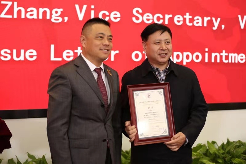 图为上海戏剧学院院领导为上戏电影教育咨询委员会委员颁发聘书