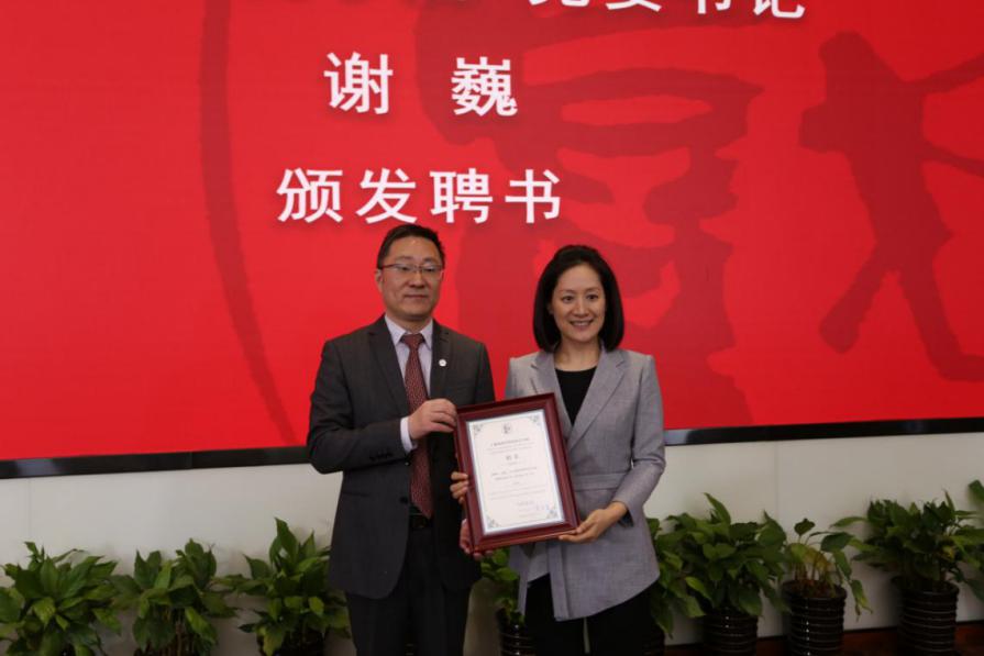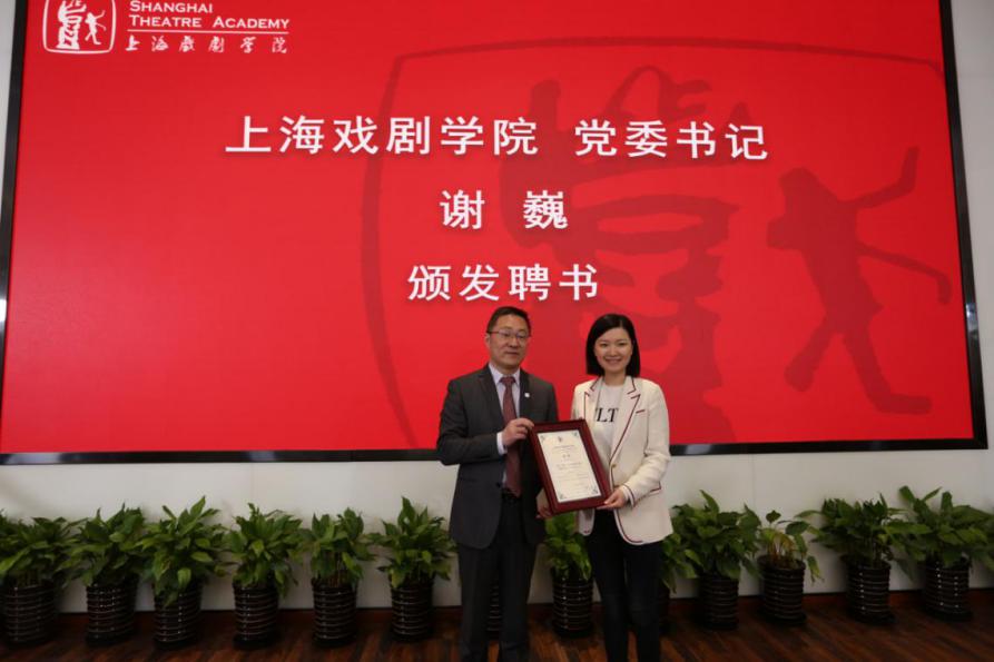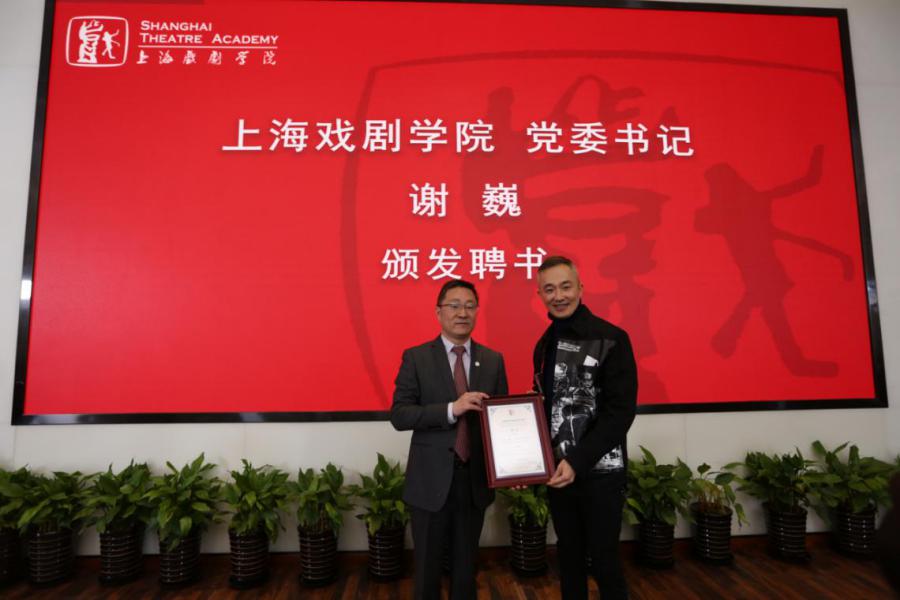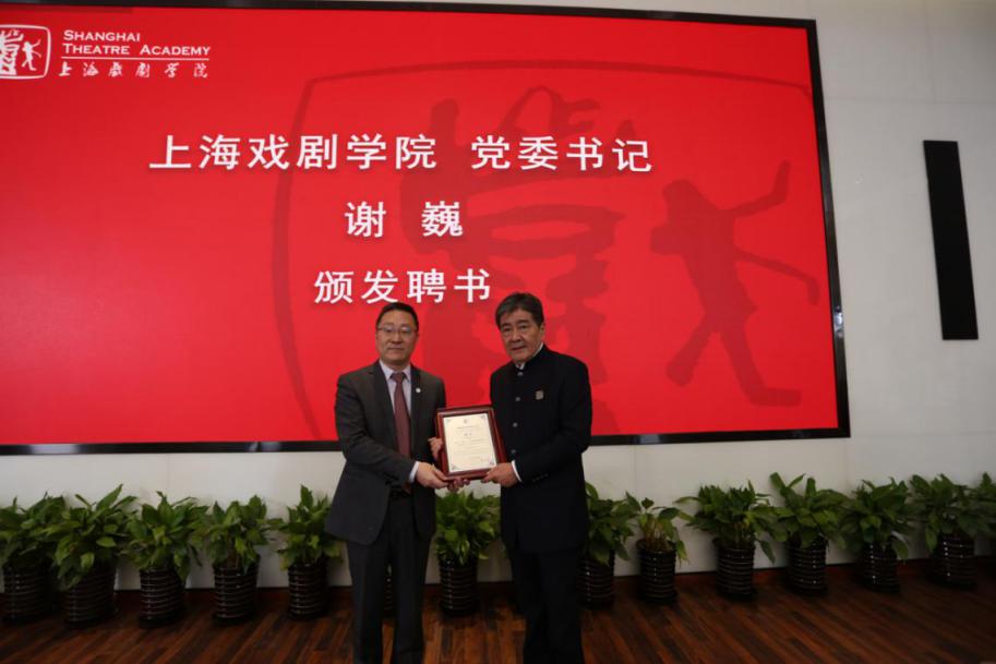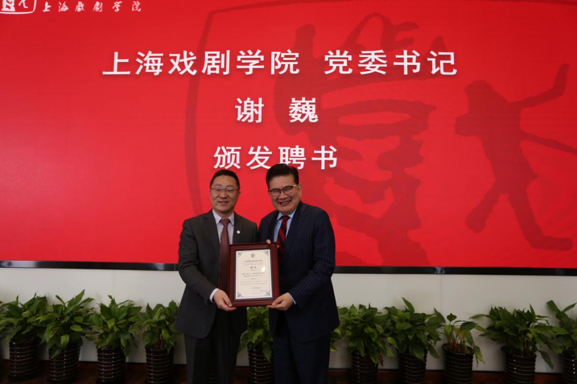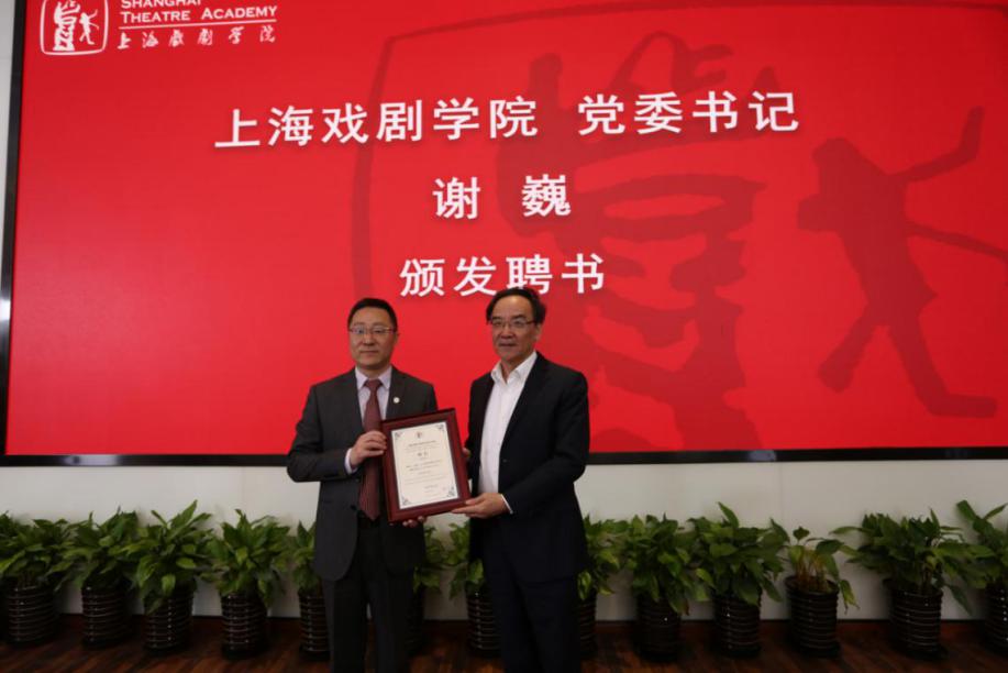 图为上海戏剧学院党委书记谢巍为PT计划专家颁发聘书