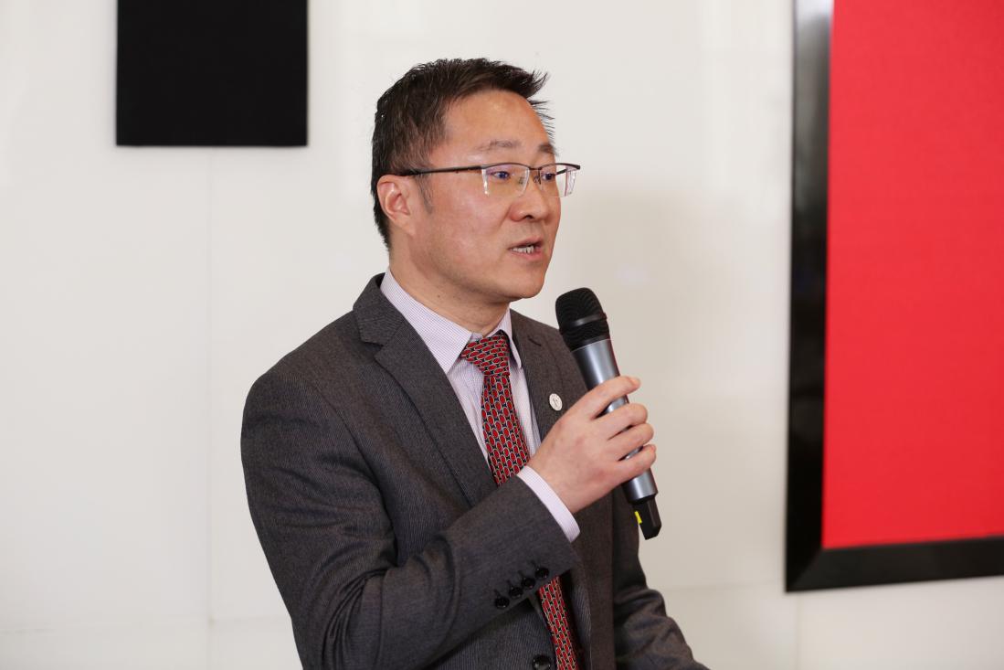 图为上海戏剧学院电影学院副院长董健介绍上戏电影学院教育教学情况