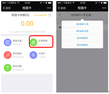 交易明细是查询校园卡近4个月的所有的交易流水账目