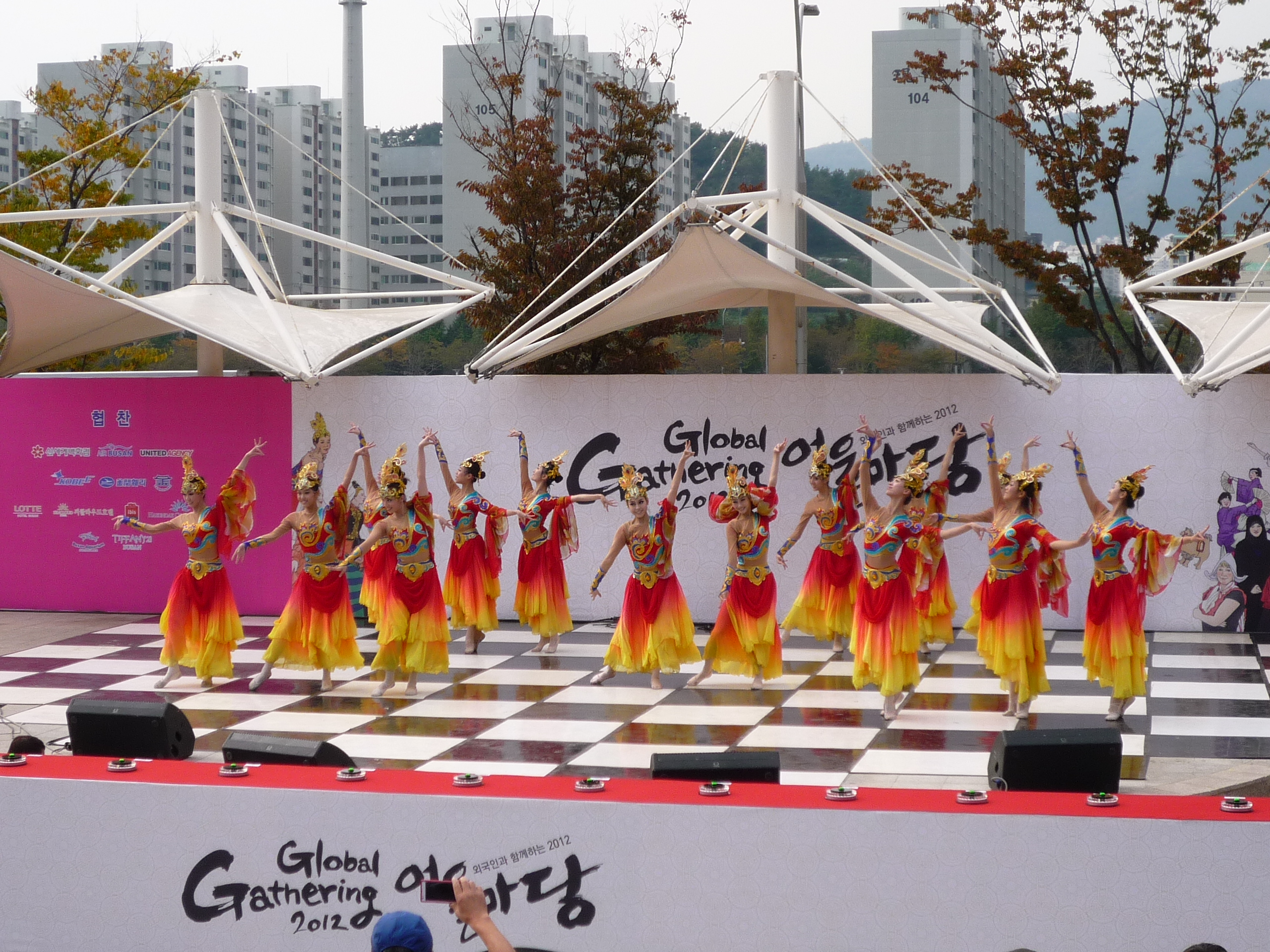 访韩期间,上海文化交流访问团分别举行了1场专场演出和2场广场演出,受到了韩国市民和来自世界各地的旅游者的热烈欢迎和高度评价。10月19日的专场演出地点设在釜山市中心世界上最大的新世界百货大楼文化剧场,近400个座位座无虚席,我校师生表演的《富贵图》、《凌空飘》、《望山拉姆》等舞蹈节目和武术院运动员表演的武术节目使剧场内不断掌声雷动,演员欲罢不能。20日的广场演出地点设在釜山海云台APEC公园,有82个国家市民团体4万多人参加活动,5个国家的演出团体参与表演的“欢聚一堂2012年和谐广场”活动现场。我校青年舞蹈演员和上海武术运动员的表演吸引了大批观众。代表大连市前来参加活动的大连市对外友协秘书长曲世成看完演出激动地说:“上海最精彩的演出为釜山的这个活动撑了场子,为我们中国人脸上争了光”。
