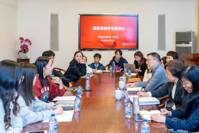 2020年11月初,校领导谢巍、胡敏、周银娥、张伟令及马克思主义学院全体思政课教师共同参与了集体备课会、师生座谈会等活动,就如何开展教学、如何推进新时代高校思想政治理论课改革创新、如何提升艺术人才的政治素养等问题进行了充分的交流和探讨。自11月18日谢巍书记开设第一讲以来,校领导谢巍、胡敏、周银娥、张伟令和思政课老师陈敏、徐霞、肖永奎、王娅奇分别完成了八个方面的专题教学,内容涵盖习近平新时代中国特色社会主义思想总论,中国共产党人的初心、使命和新征程,“四个全面”战略布局,新时代中国特色社会主义经济建设、政治建设、文化建设、社会建设和生态文明建设,于2021年1月按教学计划顺利结课。结课后,马克思主义学院召开了课程教学总结会并开展了下学期教学备课会。