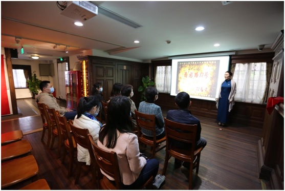在繁华的静安寺愚园路上,坐落着一幢砖木结构的洋房,这是当时上海工人运动和地下党的杰出领导人刘长胜的故居,也是中共中央上海局的秘密机关之一。在此,党员们上了一堂题为《印痕:红色使命》的情景党课,党课形式生动,令人深受触动。在开课前,举行了全体党员现场佩戴党徽的仪式,接着在专职讲解员生动的演绎下,大家一起“穿越”到1949年解放前的上海,走进革命先辈地下斗争的生活,感受了地下党员为了迎接上海解放而壮烈牺牲的往事,切身感受到了共产党人宁死不屈的大无畏精神。