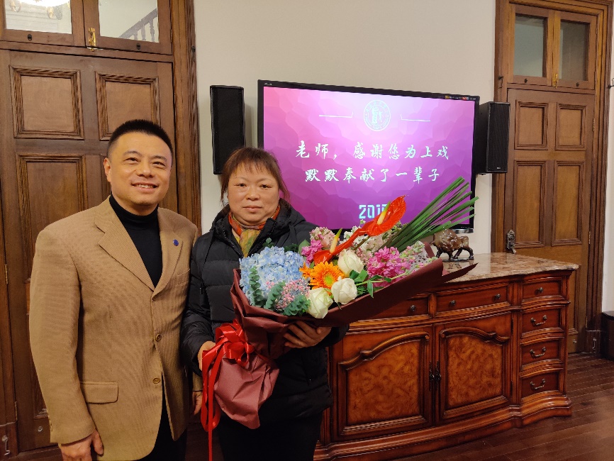各个职能部门领导在发言中感谢退休的老师们这么多年来对学校的贡献。他们默默的在各自岗位上和讲台上为学校、为学生们付出了自己的青春和年华。真诚地希望大家能够在华丽转身之后,将退休后的生活过的更加多姿多彩,更加健康快乐,各位老师“一日在上戏,就是上戏人”,希望继续关心学校的发展,将学校“教工之家”当成自己的家,能够常回家看看。