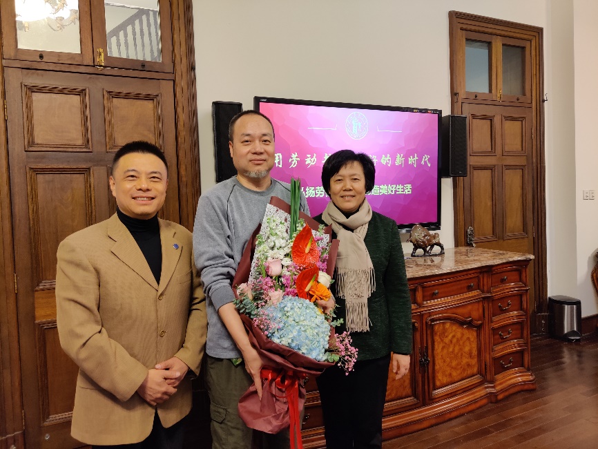 工会将每年的慰问劳模和五一劳动奖章获得者作为年终慰问的重点工作。第二天工会的同志去专程慰问了之前没能到场的戴平老师、朱美丽老师。