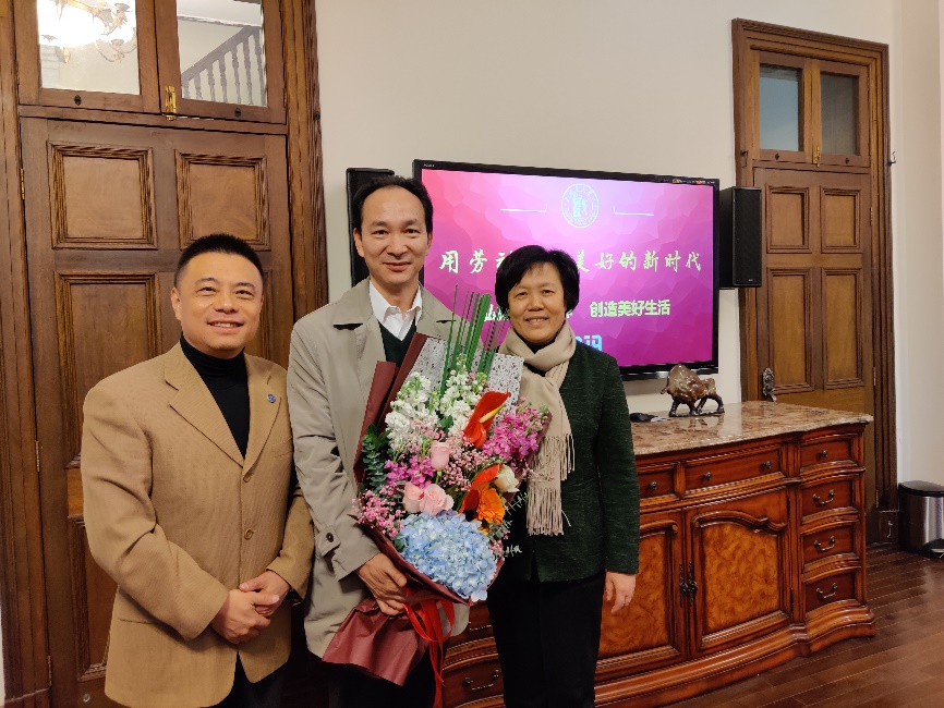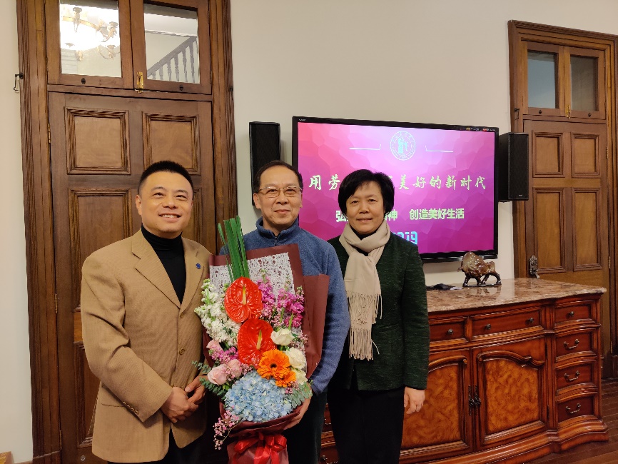 党委副书记、副院长、工会主席张伟令代表工会慰问上海市劳模孙祖平老师