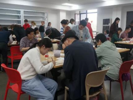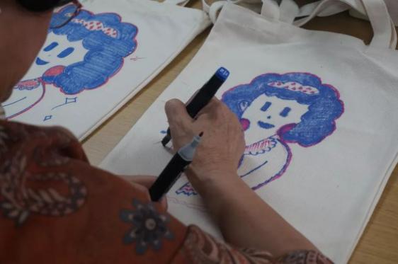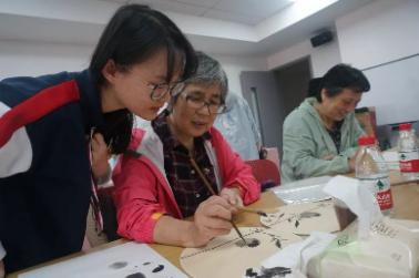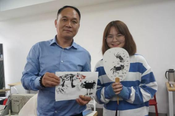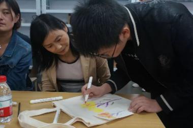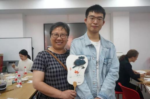 在志愿者同学的协助下,大家饶有兴致地拿起桌上的扇面,迫不及待地挑选起喜欢的颜色。提笔、点墨、运笔,可谓有板有眼。画国画的让花草飞鸟跃然于纸上,画书签的创造了一个个可爱的卡通形象,而帆布袋上鲜明的图案也令人眼前一亮。教师与学生欢聚一堂,一起绘国画、制书签、做扇子,以一种别样的方式感受到代代传承、生生不息的家园精神,共同播下至善至美的种子。整个构思、绘画、制作过程充满乐趣与温馨,许多老师完成作品后都露出了欣喜的笑容,并拉着协助他们创作的志愿者同学竞相“秀”起作品。
