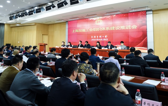 海市总工会4月28日召开上海加强工会组织体系建设推进会。市总工会党组书记、副主席黄红主持会议,市人大常委会副主任、市总工会主席莫负春出席会议。