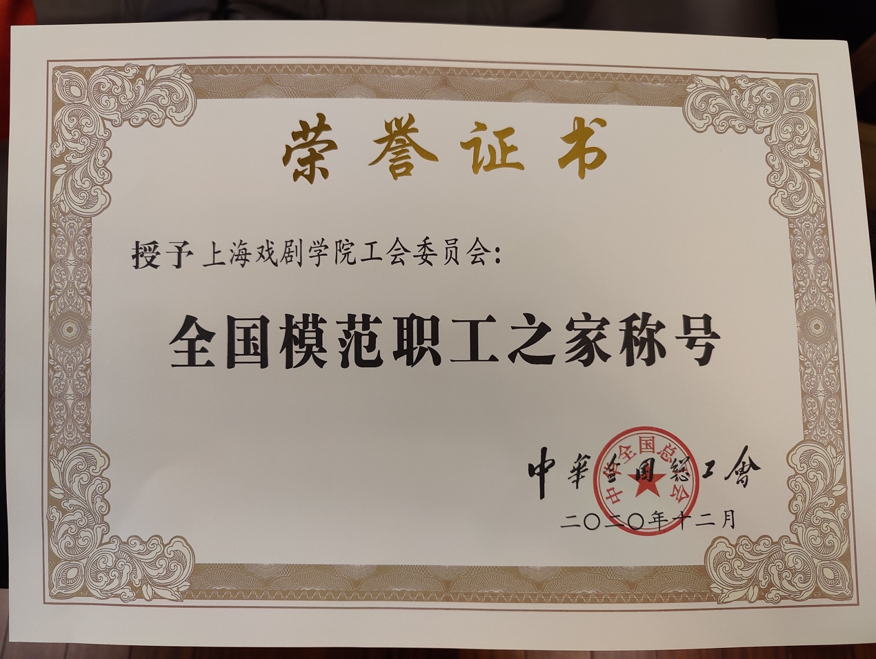 上海戏剧学院工会委员会获评全国模范职工之家。工会冯昀霞老师代表学院工会上台领奖。