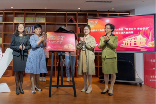 出席活动的各方领导,分别为落户在上戏的“戏剧+”上海市大学生文创实践基地揭牌,并启动首届长三角青年文创设计大赛暨“建党百年 青春创想”2021年红色文创大赛。红色文创遇上青春力量,在庆祝中国共产党成立一百周年之际,正走向新的融合。