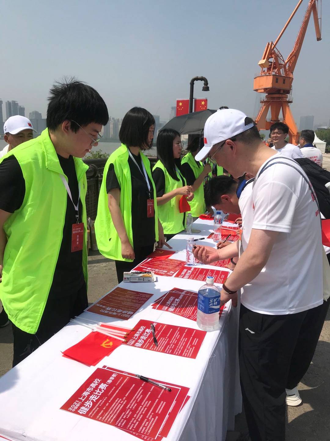 5月9日上午,队员们一早就来到了杨浦滨江大道。工会常务副主席张云蕾担任上海戏剧学院代表队领队,典磊老师作为工会工作人员全程陪同。在热身活动后,全体唱中华人民共和国国歌。8:40分,比赛法令、正式开始,学院领导们全部顺利走完了6公里的健步走赛程,比赛途中还以优异成绩完成了党史知识测试。