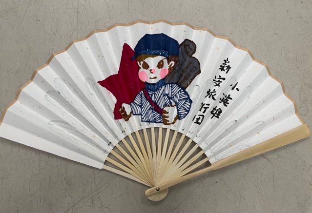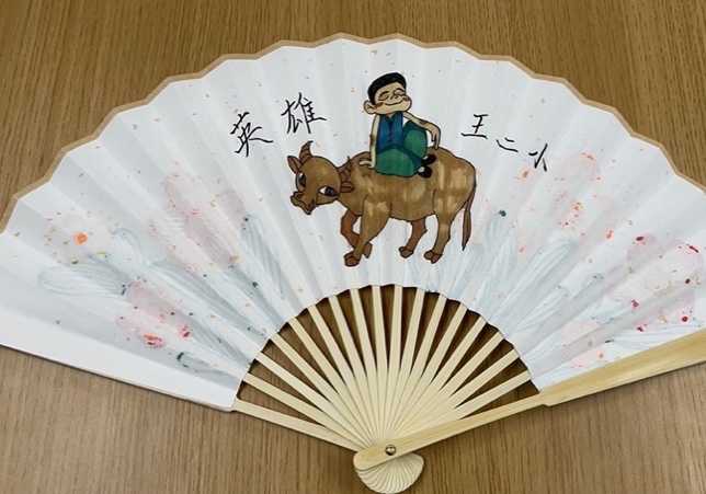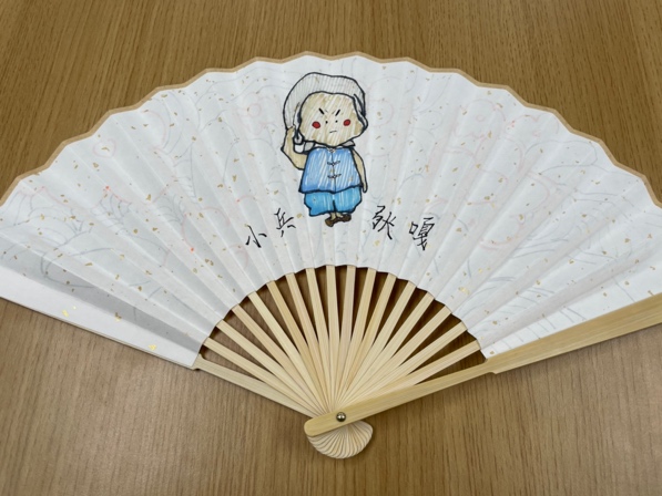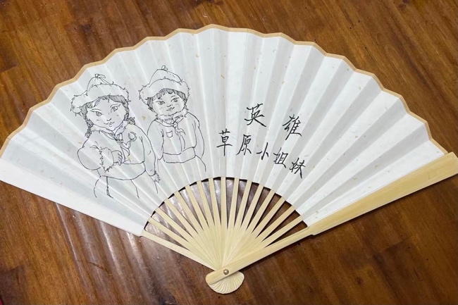 一份礼物是夏季必备的折扇,扇面上绘有小兵张嘎、放牛娃王二小、草原英雄小姐妹等少年英雄形象。这些形象都是创意学院设计类专业的学生精心绘制的,参与绘制的学生不少是党员或入党积极分子。习近平总书记今年“六一”期间提到的“新安旅行团”的形象,也被绘制在了扇面上。通过绘制小英雄形象,学生们潜移默化地进行了一次党史学习教育。