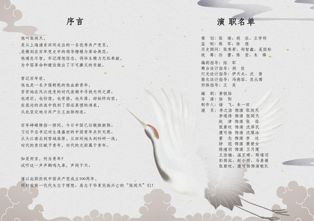25岁,张闻天迈上了去苏联的汽轮,寻找到了一条能够实现个人理想和国家振兴的道路。恰好的是,今年我也25岁,逢到这样一个机会参与到《声闻于天》的制作和排演中去,有时我看剧中张闻天的迷茫与坚定,就好像是在看自己,而又从他身上汲取到了克服困难的勇气。戏如人生,做一个戏又何尝不像起起伏伏的人生状态,初为制作人,我也因为稚嫩碰到了很多问题和波折,在坚持不下去的时候,我便想到夹杂在新旧时代中的张闻天,想到了他是如何在一条条纷杂的道路中找到真正的信仰。习近平总书记曾说,青年一代有理想、有本领、有担当,国家就有前途,民族就有希望。张闻天是青年人,我是青年人,观众是青年人,与其说《声闻于天》展现的是张闻天的青年时期,不如说这是跨越百年两代青年人在剧场的交汇。