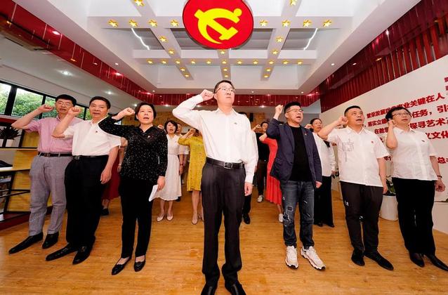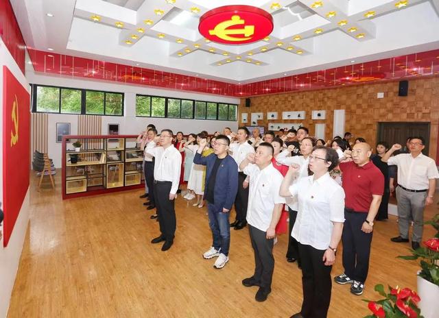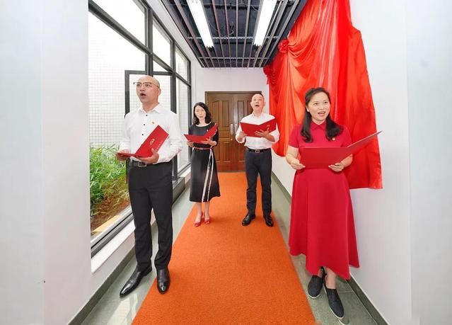 在刚启用的莲花路校区党建服务中心,大家在谢巍的领誓下庄严地重温了入党誓词。